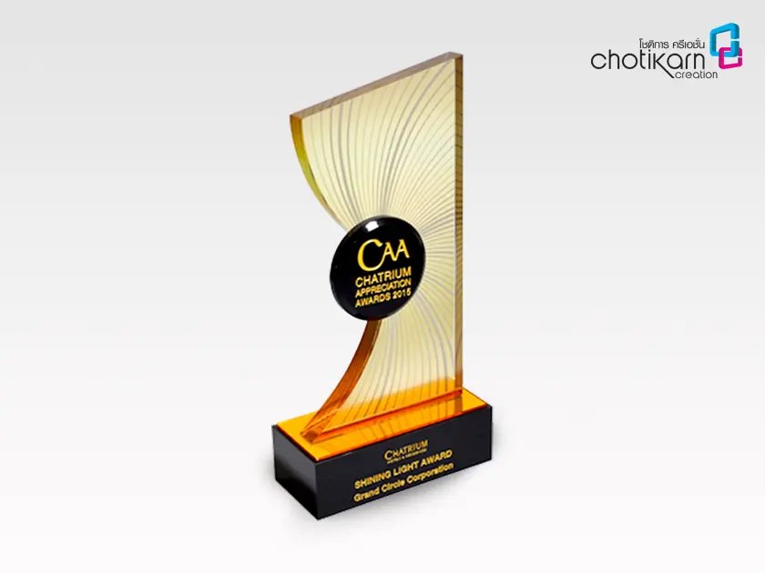 โล่รางวัลอะคริลิค (Acrylic Trophy) สำหรับงานมอบรางวัลหรืองานเกียรติยศ สามารถทำรูปทรงได้หลากหลาย เช่น ทรงสี่เหลี่ยม, วงกลม, หยดน้ำ หรือรูปทรงอิสระอื่นๆ