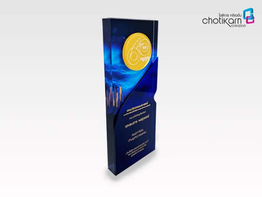 โล่รางวัลอะคริลิค (Acrylic Trophy) สำหรับงานมอบรางวัลหรืองานเกียรติยศ สามารถทำรูปทรงได้หลากหลาย เช่น ทรงสี่เหลี่ยม, วงกลม, หยดน้ำ หรือรูปทรงอิสระอื่นๆ