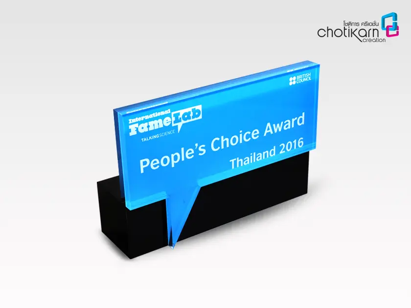 โล่รางวัลอะคริลิค (Acrylic Trophy) สำหรับงานมอบรางวัลหรืองานเกียรติยศ สามารถทำรูปทรงได้หลากหลาย เช่น ทรงสี่เหลี่ยม, วงกลม, หยดน้ำ หรือรูปทรงอิสระอื่นๆ
