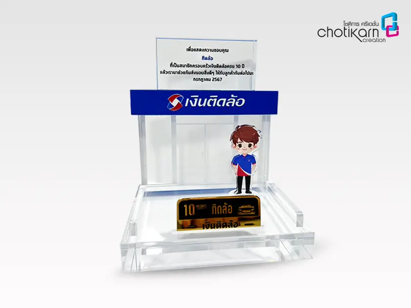 โล่อะคริลิค (Acrylic Trophy) เป็นทางเลือกที่ได้รับความนิยมสูงสำหรับงานมอบรางวัลและเกียรติยศ เนื่องจากมีน้ำหนักเบา ทนทานต่อแรงกระแทกได้ดีกว่าคริสตัล และสามารถสั่งผลิตตามรูปแบบที่ต้องการได้หลากหลาย
