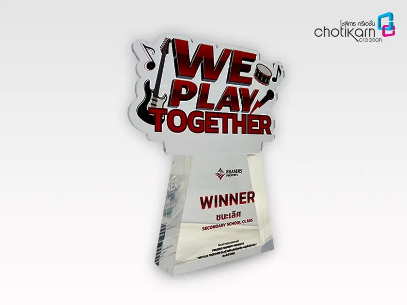 โล่รางวัลอะคริลิค (Acrylic Trophy) สำหรับงานมอบรางวัลหรืองานเกียรติยศ สามารถทำรูปทรงได้หลากหลาย เช่น ทรงสี่เหลี่ยม, วงกลม, หยดน้ำ หรือรูปทรงอิสระอื่นๆ