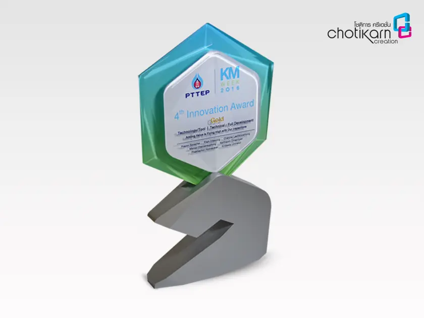 โล่รางวัลอะคริลิค (Acrylic Trophy) สำหรับงานมอบรางวัลหรืองานเกียรติยศ สามารถทำรูปทรงได้หลากหลาย เช่น ทรงสี่เหลี่ยม, วงกลม, หยดน้ำ หรือรูปทรงอิสระอื่นๆ