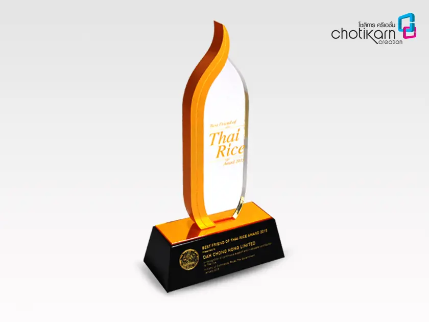 โล่รางวัลอะคริลิค (Acrylic Trophy) สำหรับงานมอบรางวัลหรืองานเกียรติยศ สามารถทำรูปทรงได้หลากหลาย เช่น ทรงสี่เหลี่ยม, วงกลม, หยดน้ำ หรือรูปทรงอิสระอื่นๆ